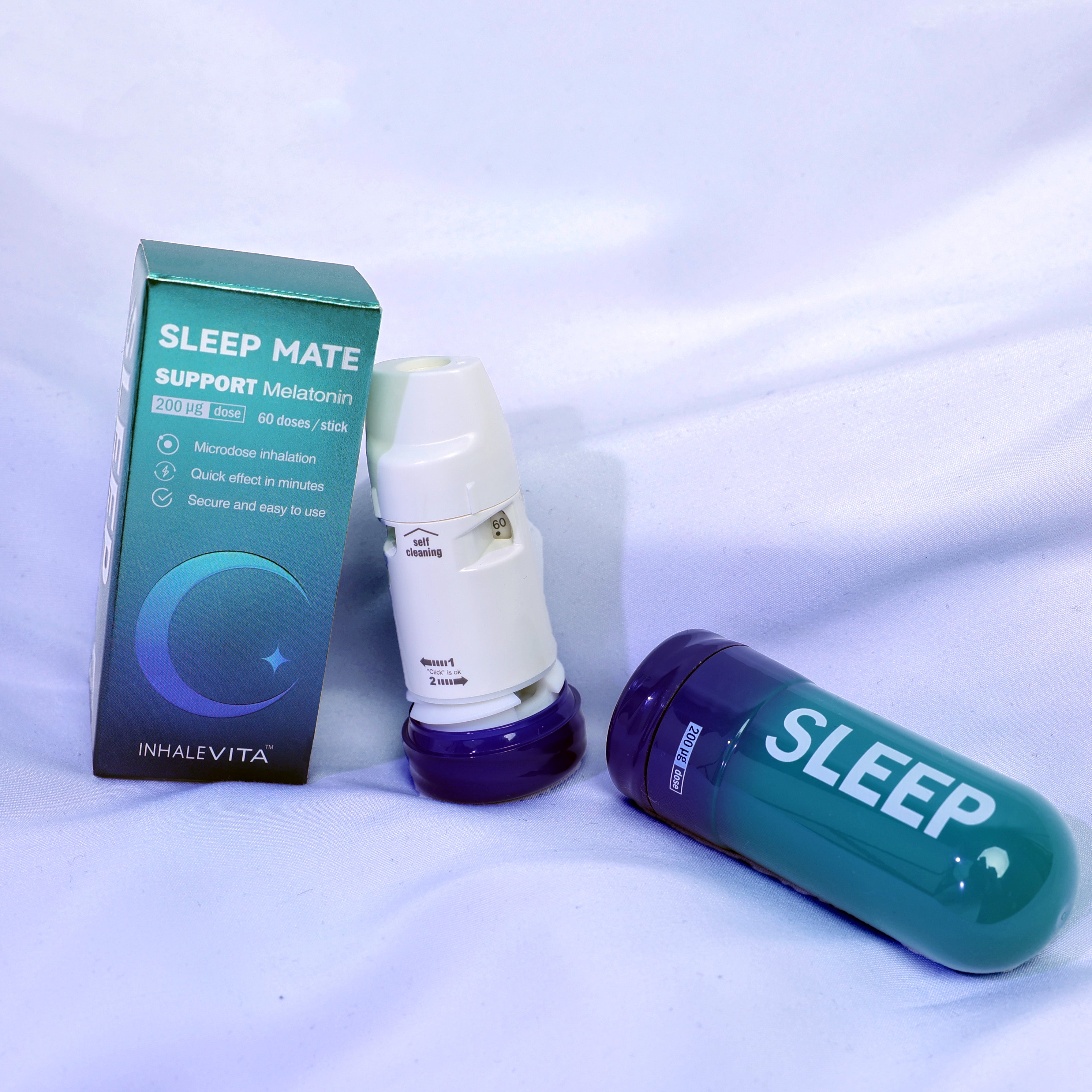 InhaleVita Sleep Mate Melatonin offers a patented design with inhaled melatonin, providing a quick and natural solution for deeper, more restful sleep.